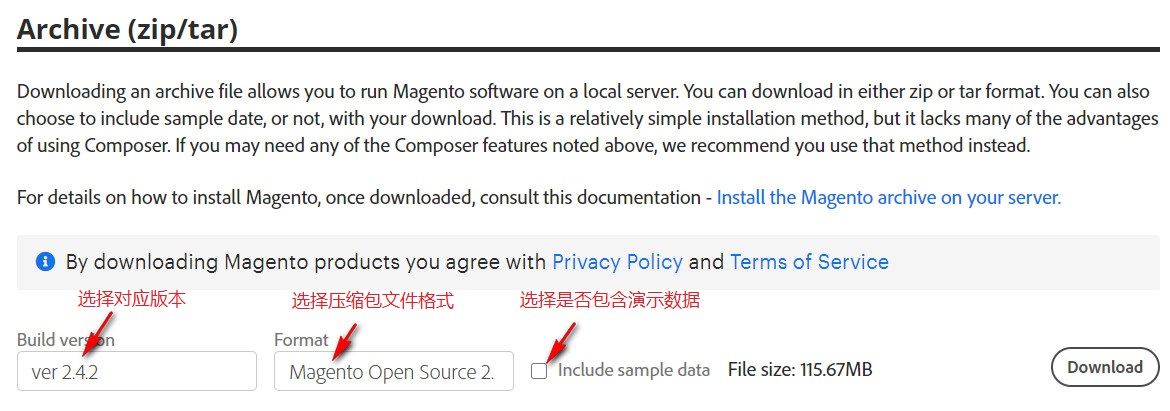 1.源码包下载: Magento2 源码官方下载页面: https://magento.com/tech-resources/download